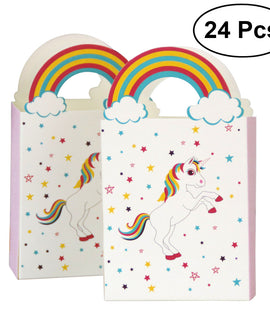 24pcs Unicorn Paper Bags with Rainbow Handle Party Gift Candy Bags