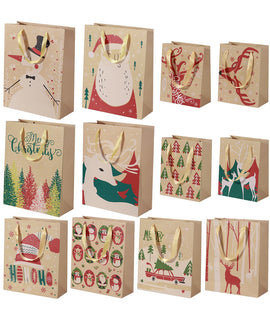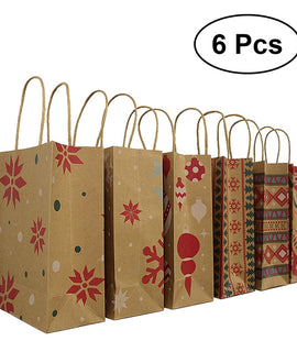 6pcs Kraft Paper Bags with Handle Party Gift Bag Christmas Favor Present Bag Wrapping Bags
